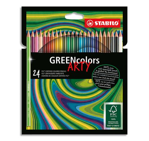 Etui carton 24 Crayons de couleur GREENcolors ARTY, corps fin hexagonal, bois, Mine 3mm, assortis