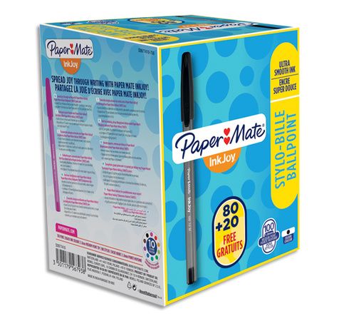 Boîte De 100 Stylos Bille à Capuchon Inkjoy Encre Noire (80+20 Gratuits)