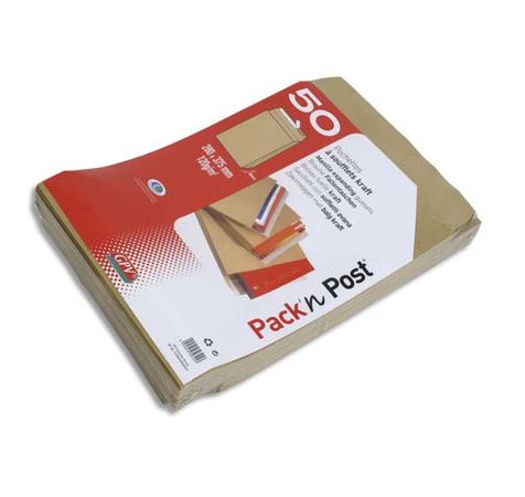 Paquet de 50 pochettes en Kraft Brun 3 Soufflets 120G Format 280X380mm