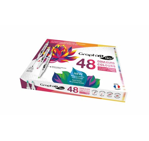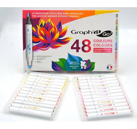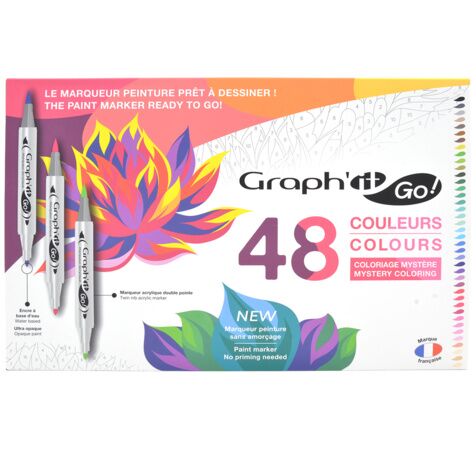 GRAPH'IT GO! est un marqueur acrylique qui dessine dès qu’on l’ouvre ! Aucun amorçage, ni pompage requis. Il est parfait pour tous les amateurs de dessins loisirs, de coloriage mystère ou d’envies créatives.