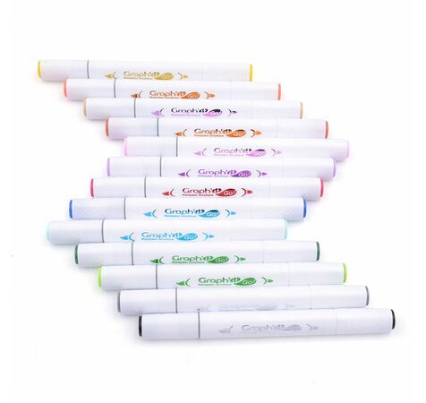 Tout comme les autres marqueurs GRAPH'IT, le marqueur GRAPH'IT GO! est double pointe : une pointe pinceau souple pour les détails et une pointe conique pour les aplats.