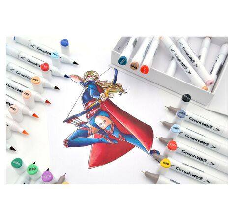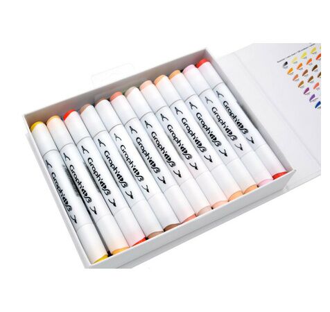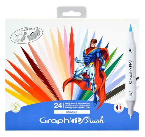 Ce set de marqueurs GRAPH'IT Brush & Extra fine Comics est composé de 24 feutres à alcool double pointe, idéals pour les dessinateurs, les scrappeuses et les étudiants en Beaux-Arts.