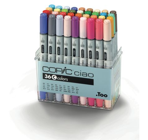 Le marqueur double-pointe CIAO est idéal pour commencer avec COPIC. Il dispose des mêmes pointes interchangeables que le COPIC SKETCH: une pointe biseautée et une pointe pinceau souple, mais avec un nuancier plus réduit: 180 couleurs au lieu de 358.