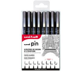 L'Uni PIN est un feutre d'écriture et de dessin précis et technique. Avec sa pointe calibrée et son encre SUPER INK, il garantit des tracés permanents, intenses, nets et précis. À la fois robuste et design, reconnu pour la densité et la couvrance de ses couleurs, il est l'outil incontournable de nombreux artistes et professionnels pour leurs réalisations techniques ou artistiques (y compris en technique mixte).