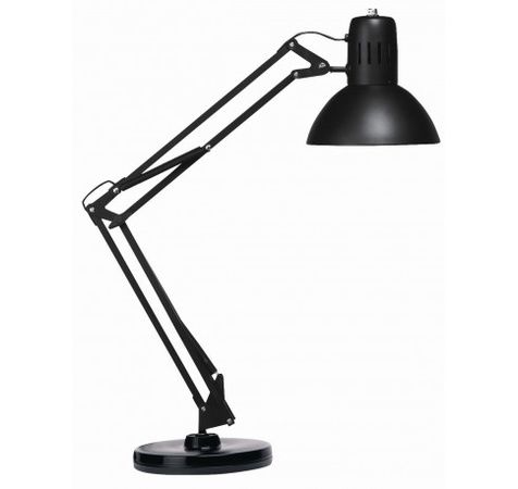Bras de 80 cm pivotant d'une grande robustesse grâce à sa double articulation et ses ressorts de compensation facilitant son orientation en tous sens. Ampoule 20W fluo spirale fournie, interrupteur sur la tête. Garantie 1 an. Fixation par socle.
