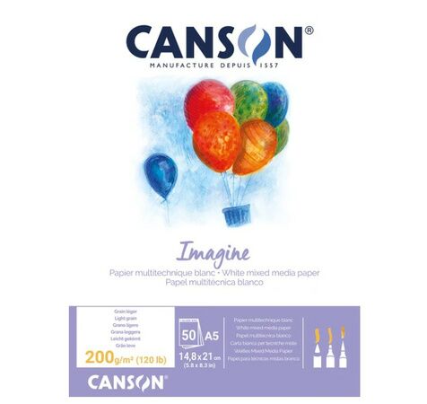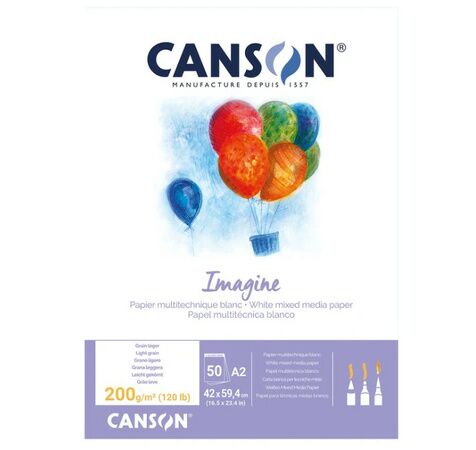 Sa texture brute naturelle et sa grande capacité d'absorption font du bloc IMAGINE un produit polyvalent, aussi bien pour les techniques sèches que la gouache ou l'aquarelle. Son coloris blanc pur offre un excellent contraste et un rendu armonieux des couleurs. Bloc de 50 feuilles (sauf A1 = 25 feuilles) 200g.