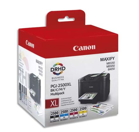 Impression recto-verso automatique Première impression rapide en 7 s. Capacité bac papier de 500 feuilles (2x250) Impression mobile via MAXIFY Cloud Link, Google Cloud Print™, AirPrint™ Le + : Autonomie et rendement élevés avec les cartouches XL