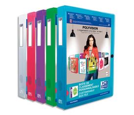 En polypropylène 1 face personnamlisable (1ère de couverture). Mécanisme 4 anneaux ronds.