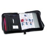 Couverture en simili cuir expansé. Fermeture par zip, poignée de transport rigide. Multiples espaces de rangement : poches diverses et porte-stylos. Livré avec 20 faisceaux de 10 pochettes, soit 400 vues. Coloris noir.