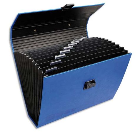En simili cuir, toucher velours. 12 compartiments en carte noire avec onglets plastique. Fermeture tuck en plastique. Poignée de transport. Fond renforcé. Format : 35 x 29,5 x 8 cm pour format A4.