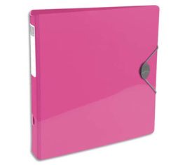 En polypropylène rigide 22/10e. Dos 8 cm. Fermeture par élastique central. Œillet de préhension. Étiquette de dos adhésive.