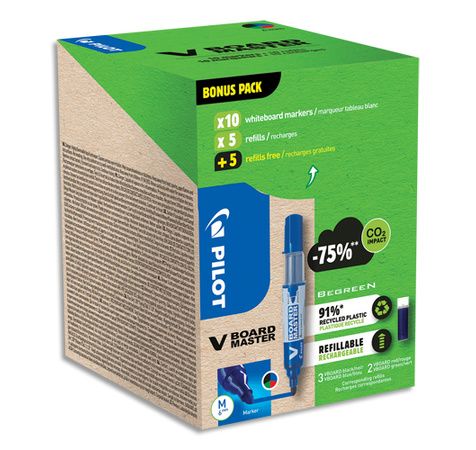Pack de 10 Marqueur effaçables VBOARD MASTER + 10 recharges à -50%. Coloris assortis