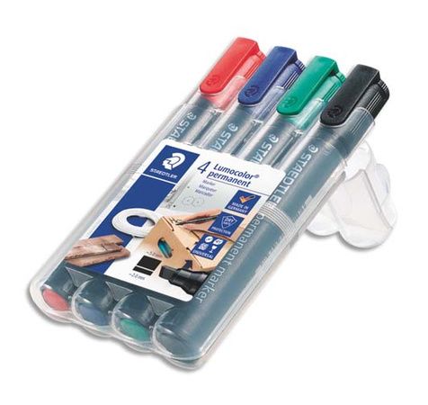 Boite De 4 Marqueurs Permanents Assortis Pointe Biseautée Lumocolor