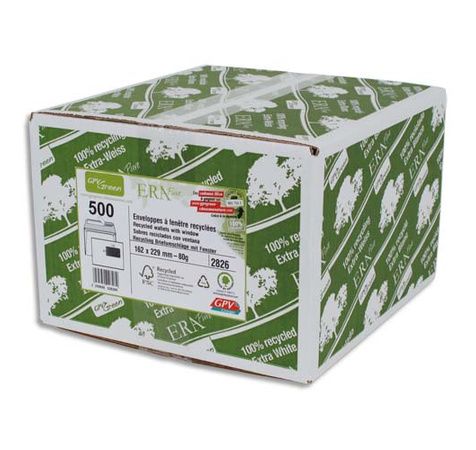 Boite 500 Enveloppes Recyclées Extra Blanches Erapure, Format C5 162X229mm Fenêtre 45X100mm 80G