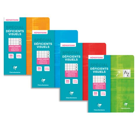 Répertoire piqûre 17x22cm 96 pages Séyès en carte pour Déficient Visuel. Coloris assortis