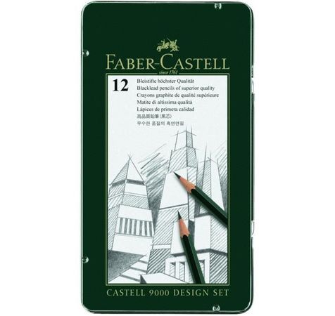 Le CASTELL 9000 - un vrai classique parmi les crayons graphite - a été lancé sur le marché en 1905 par le comte Alexander von Faber-Castell. Sa qualité ainsi que le grand choix de duretés en ont fait un outil de travail indispensable des artistes et dessinateurs. Sa mine est entièrement collée au bois et est ainsi très résistante au bris. Le CASTELL 9000 est disponible en 16 degrés de dureté, idéal pour tous les travaux artistiques et techniques. Crayon graphite de la plus grande qualité pour l'écriture, le dessin et les ébauches Vernis écologique à l'eau Mine particulièrement résistante grâce à un collage spécial Disponible en 16 dégrés de dureté Ce set se compose des 12 crayons suivant : 2B, 3B, 4B, B, HB, F, H, 2H, 3H, 4H, 5H, 6H.