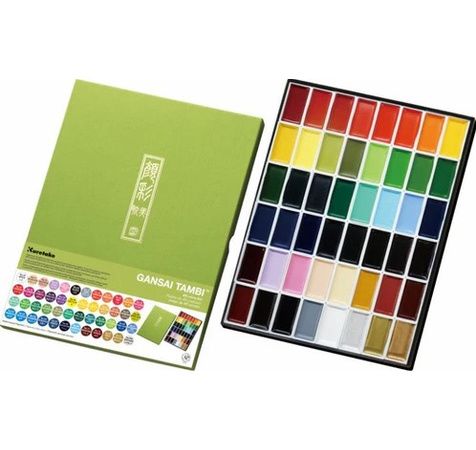 L’aquarelle de la série « gansai» peut être aussi utilisée pour la calligraphie sur bois, argile et tissu. mais aussi sur le papier avec un pinceau épais ou mince.