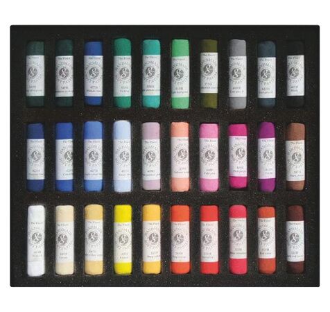Pastels roulés à la main, de qualité artiste supérieure, à la texture très douce et onctueuse. Couleurs éclatantes et brillantes grâce à des pigments de haute qualité. Glisse en douceur sur le papier. Couleurs miscibles entre elles, utilisables pour toutes les techniques du pastel. Coffret de 15 couleurs différentes, présenté dans un emballage cartonné.