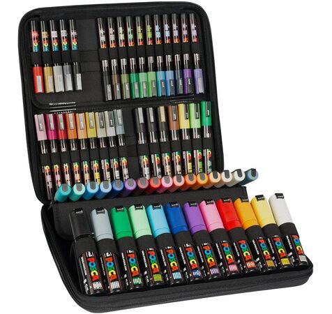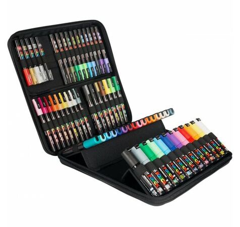 La mallette Posca contient 60 marqueurs aux pointes extra-fine, fine, moyenne et large biseautée. Ces marqueurs multicolores à encre pigmentée opaque conviennent parfaitement aux étudiants en Beaux-Arts et aux artistes confirmés. Leur formule sans alcool ni solvant permet une utilisation confortable et sécurisée.