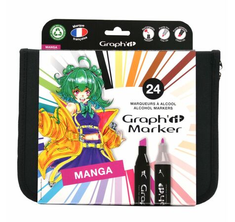 Trousse de 24 marqueurs à alcool GRAPHIT Manga pour réaliser des mangas.
