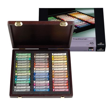 Ce coffret en bois contient : 45 pastels tendres entiers (100.5- -201.7 – 202.1 – 202.5 – 202.9 – 205.5 – 205.9 – 227.3 – 227.5 – 231.5 – 236.5 – 236.9 – 331.3 – 331.5 – 370.7 – 370.9 – 372.5 – 372.8 – 409.3 – 409.5 – 409.9 – 411.5 – 505.7 – 505.9 – 506.3 – 506.5 – 508.7 – 545.5 – 545.7 – 548.3 – 548.5 – 548.8 – 570.5 – 570.7 – 570.9 – 618.5 – 618.9 – 619.3 – 619.5 – 620.5 – 620.8 – 633.5 – 633.9 – 700.5 – 704.7)